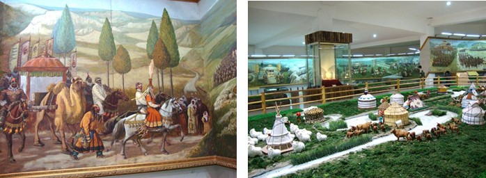 隨后我們進(jìn)入了成陵中最壯觀的蒙古歷史文化博物館,參觀長達(dá)206米的《蒙古歷史長卷》油畫是世界上最長的油畫和各種蒙古用品模型。